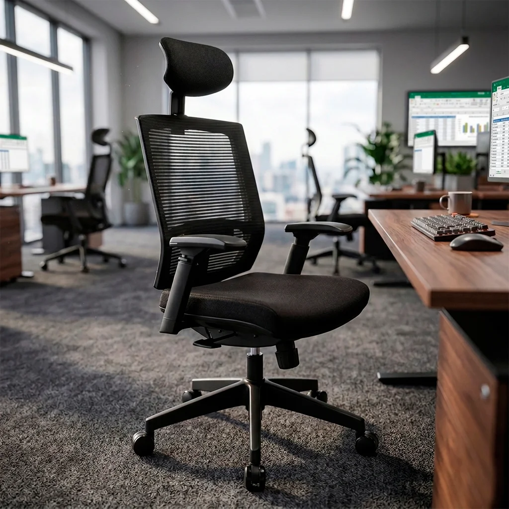 - Soporte Lumbar: Ajustable en altura, acojinado y tapizado en tela crepé.
