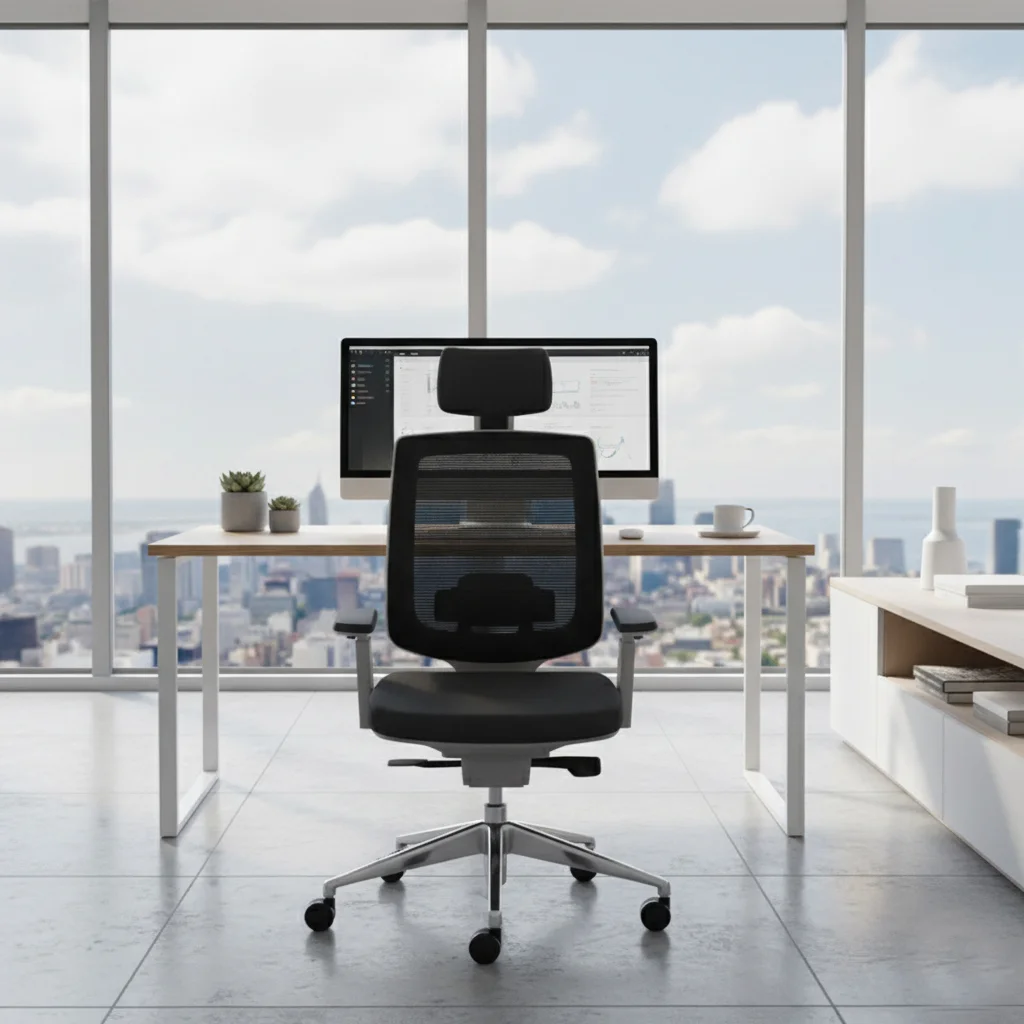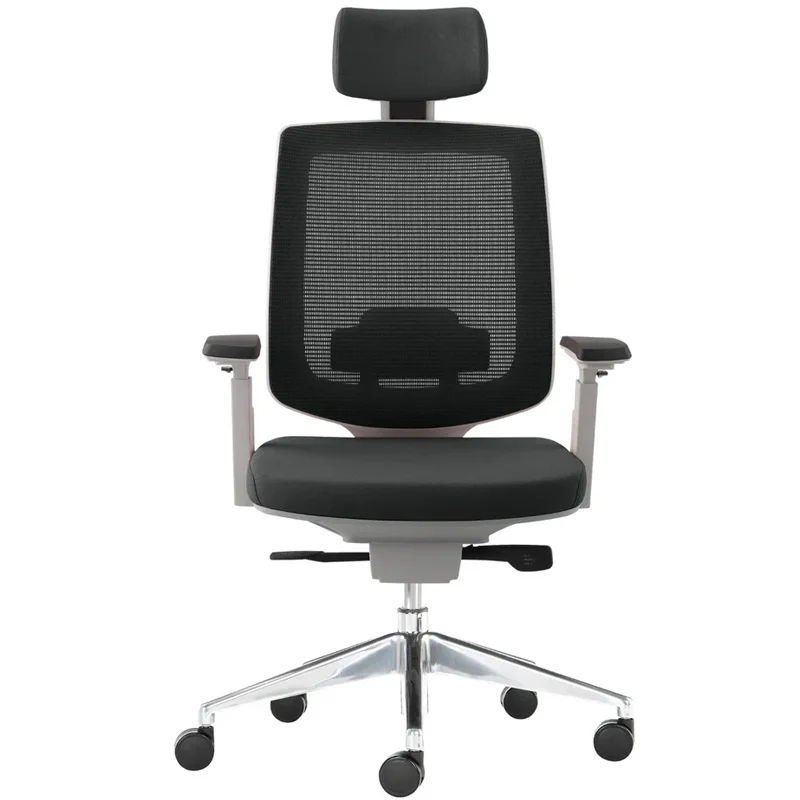 - Respaldo: Tapizado en malla con almohadilla lumbar ajustable de altura