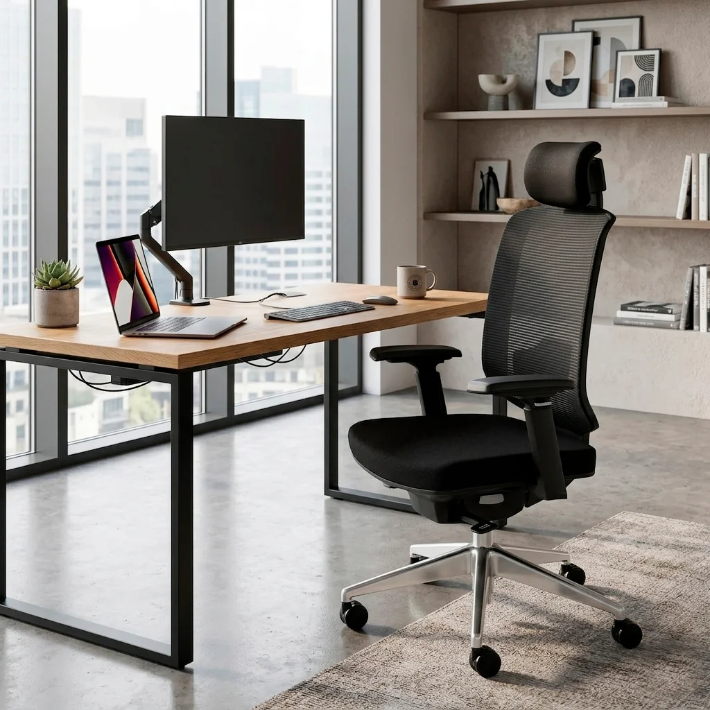 - Soporte Lumbar: Ajustable en altura y tapizado en tela.