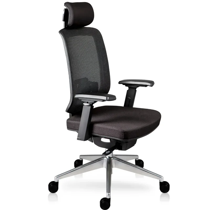 - Respaldo: Tapizado en malla con almohadilla lumbar ajustable de altura