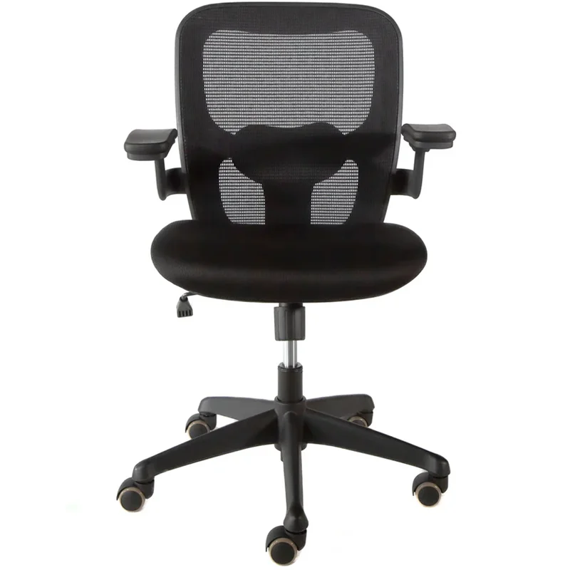- Asiento: De madera contrachapeada de 12 mm de grosor, espuma de poliuretano inyectado con espesor de 5 cm y densidad de 58 kg/m³, tapizado en tela mesh negra resistente a la fricción.
