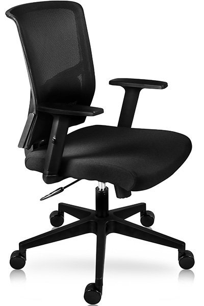 - Respaldo tapizado en malla con soporte lumbar ajustable en altura.